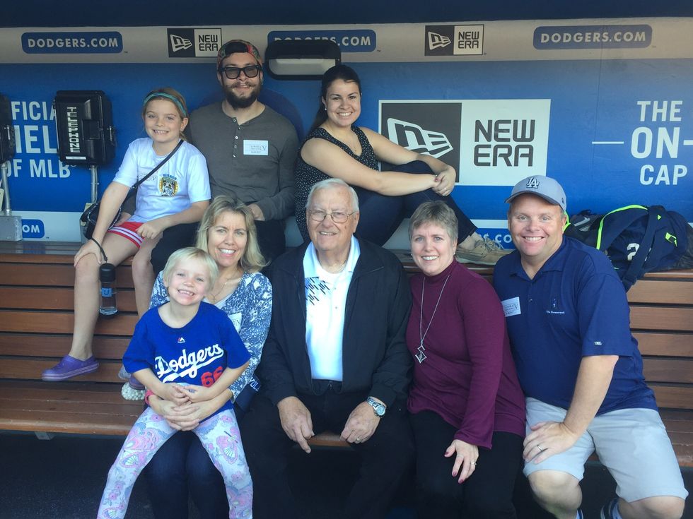 A little background: My family is about as “die-hard Dodger” as it gets. My Papa, aka the best person I know, played baseball at UCLA and later for the army. He loves baseball almost as much as his six kids, fourteen grand-kids, and one great-grandchild, and I am still a firm believer that one of the reasons he and my Nana got along so great for 55 years is because when it wasn’t baseball season, it was spring training, and the off-season is the holiday season (and what’s not to like about that). Basically as love-filled as their marriage was, at the center of it was faith, the ring around that center was family, and very close to family came Dodger baseball. My mom still remembers at an early age waiting for my Nana to go on her walks with something called a transistor radio (still have no idea what that is) for the game to start and my mom tagging along on her walks so they could listen to the game together. Growing up, as my loyalties were faltering, my Nana used to tell me to stare down at my veins and tell her what color they were: “blue!” she would yell. “You bleed Dodger blue because just like the color of your veins, this family’s love for the Dodgers is never going to change.” I half-laugh, half-cry when I think back to those days because I really hope she knows now looking down from heaven that I got my head on straight and figured out what is really important in life.