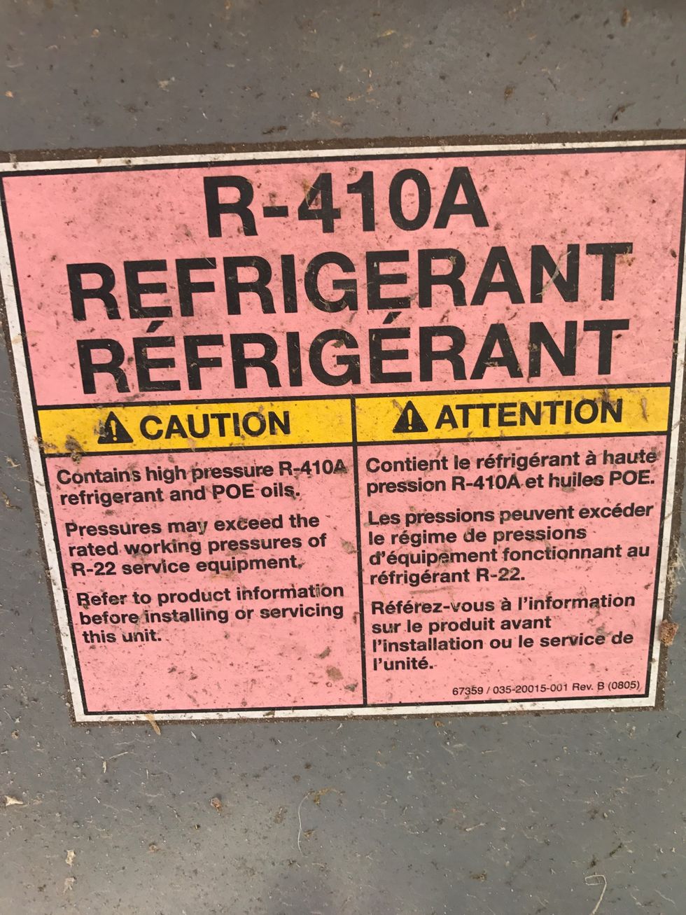 Therefore, if you are going to buy a house, then simply check the outdoor air condition unit for the pink slip. If you don't see that slip, then request a new unit at the homeowners expense. Homeowners are violating federal law if they do not have the updated model.