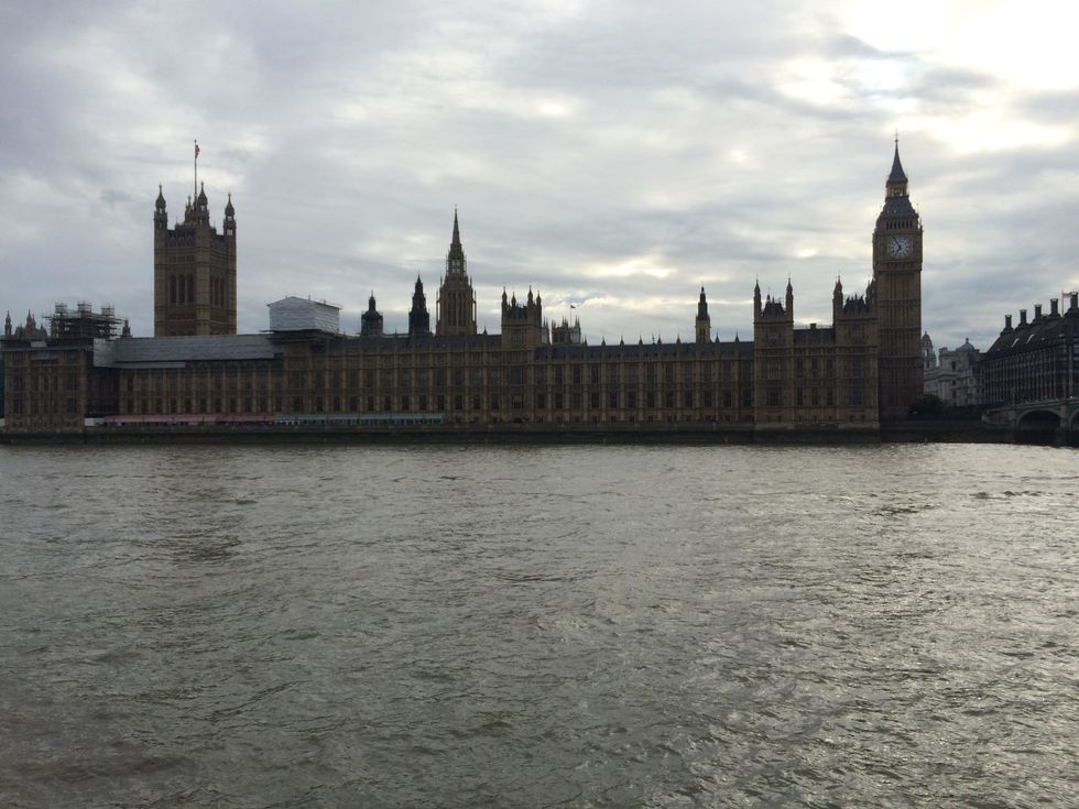 Big Ben and Parliament in London, England, before Big Ben went under construction.