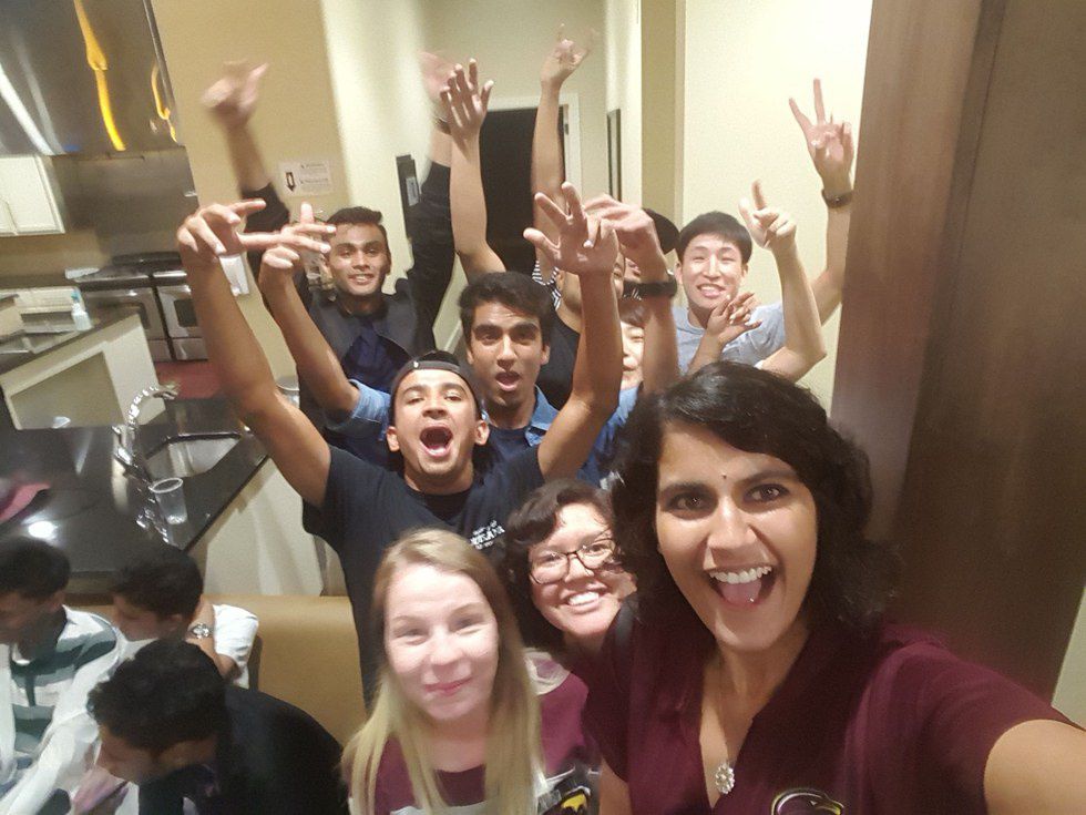 Here's a picture of me and fellow Global Ambassadors welcoming and interacting with the newest international students: