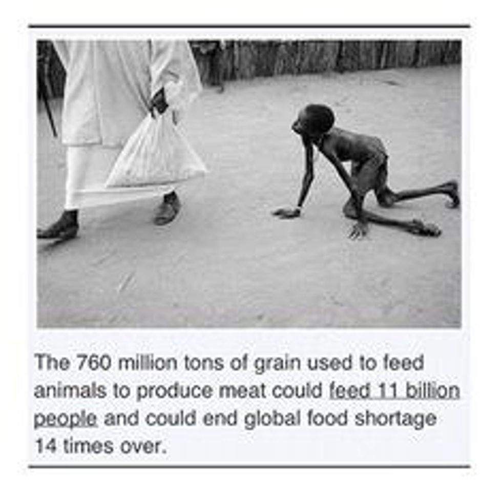 - If we all stopped eating meat, we could make a change to stop world hunger. The amount of grain that are fed to the animals is astronomical.