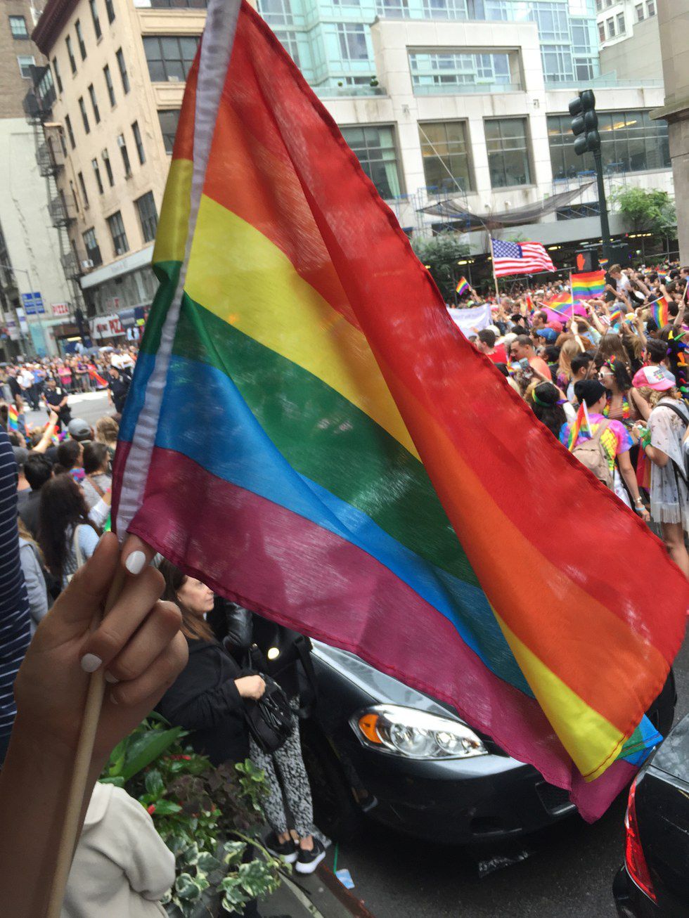 Homophobia just doesn't fly in any of the circles I run in. One of the best days of my summer was when my family squeezed through Fifth Avenue. We climbed up scaffolding and painted ourselves in color to support the Pride Parade.