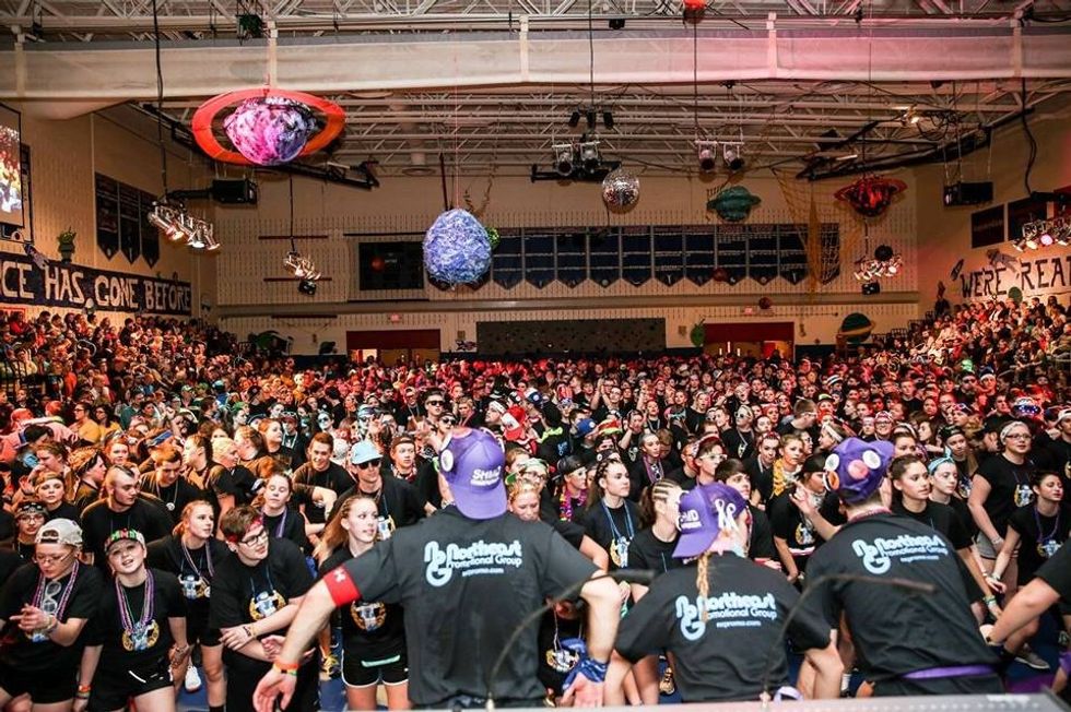No. I didn't just dance for 28 hours. I went door to door fundraising in the freezing months of January and February, knocking on doors until my knuckles cracked, trying to raise more money than I did last year. I spent the countless hours with my marathon group— planning out ideas for these imaginative skits the dancers do every year. I went garbage picking for old pieces of cardboard to use as props. I spent endless hours in my friends basement spray painting this same cardboard, tie dying shirts, and making props for our skits. I spent the entire week leading up to this dance dressing up for Spirit Week, Monday— neon day, Tuesday— tie dye day, Wednesday— cause day, Thursday— group tee shirt day, and finally, Friday— red and blue day. I arrived at the dance, practically running through the once busy school hallways, ready to have the best weekend of the year. And yes, I danced.