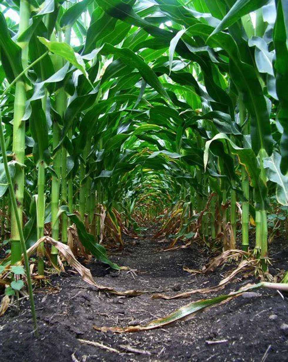 One breed is designated the male plant, while the other is designated as the female plant (full disclosure: I am not entirely sure how this decision is made). The two breeds are planted in a pattern across a field that will allow the male plants to pollinate the female plants. In order to ensure successful pollination, the tassels of the female plants are removed through a process called detasseling so that they are unable to pollinate themselves. Surprisingly (to me at least), after only one generation of cross pollination, all the resulting seeds will produce a plant with the desired parent line genetics. This seed is sold to farmers who want the benefits that come with the traits of this hybrid.