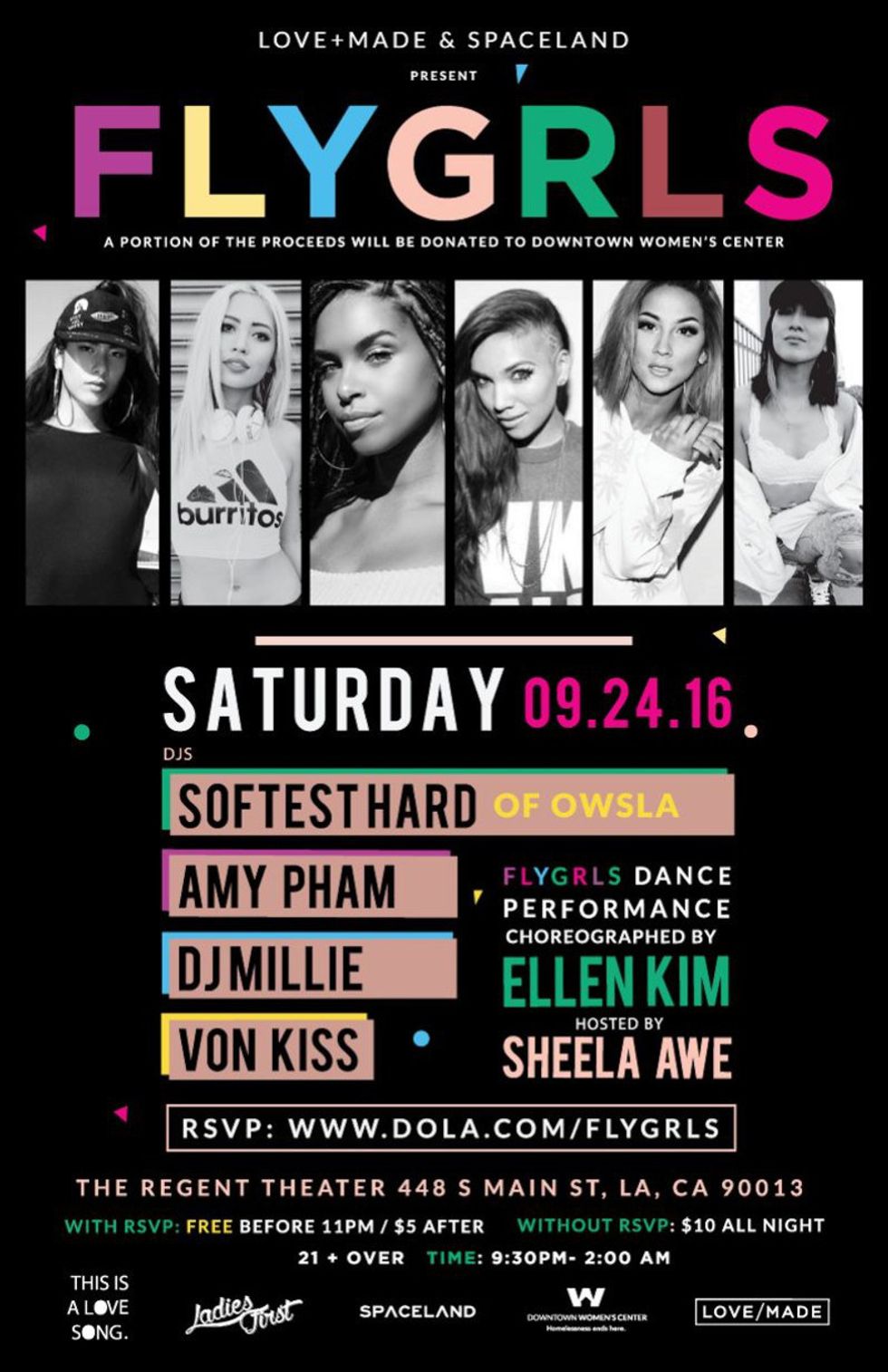 Every couple of months, the people behind Spaceland, Love + Made, and Ladies First get together to throw an event in DTLA called FLYGRLS to celebrate women from all walks of life. It’s amazing that women in dance, music, and everything in between will have a platform to share what they do best. Did I mention that the event is free with RSVP?!