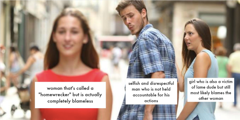 The most likely reason that the women outside of the relationships are blamed for the breakups is that people are frequently hesitant to hold men responsible and accountable for their actions. Many people claim that men have no self-control (which begs the question of why we trust them to hold public office, where they may have serious weapons readily available to them, but that’s a topic for another day). Since people think that men have no self-control, then it only makes sense to them to blame the women they are desiring for their actions, since they are seen as the ones who made the men behave in a certain way.