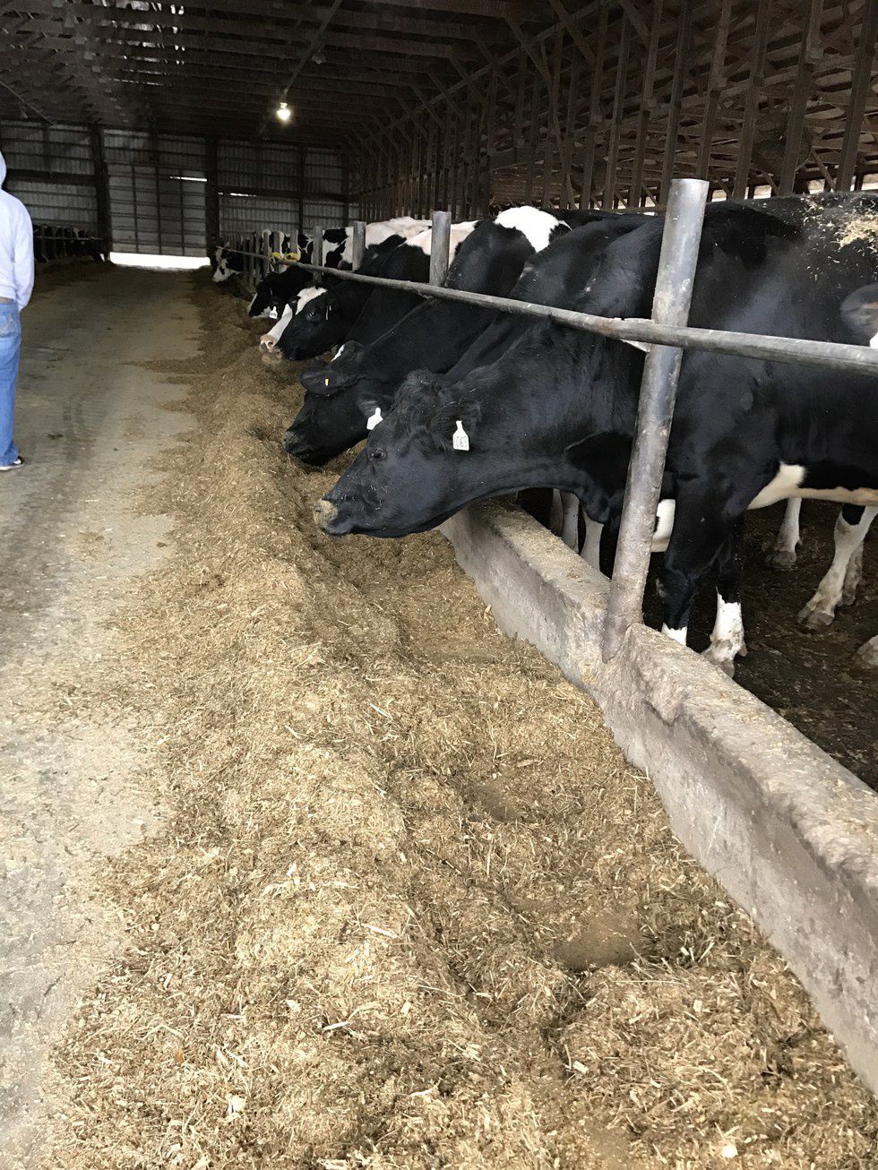My first stop on the farm was to the wet cow barn. "Wet cows" are cattle that have had calves and are now being milked. These cattle are always kept very clean, well fed, and well monitored. They have clean living quarters, having free range to either lay in their stalls, walk around, or eat. The cows are fed fresh feed daily, and in this instance, they are fed corn silage, a corn byproduct.