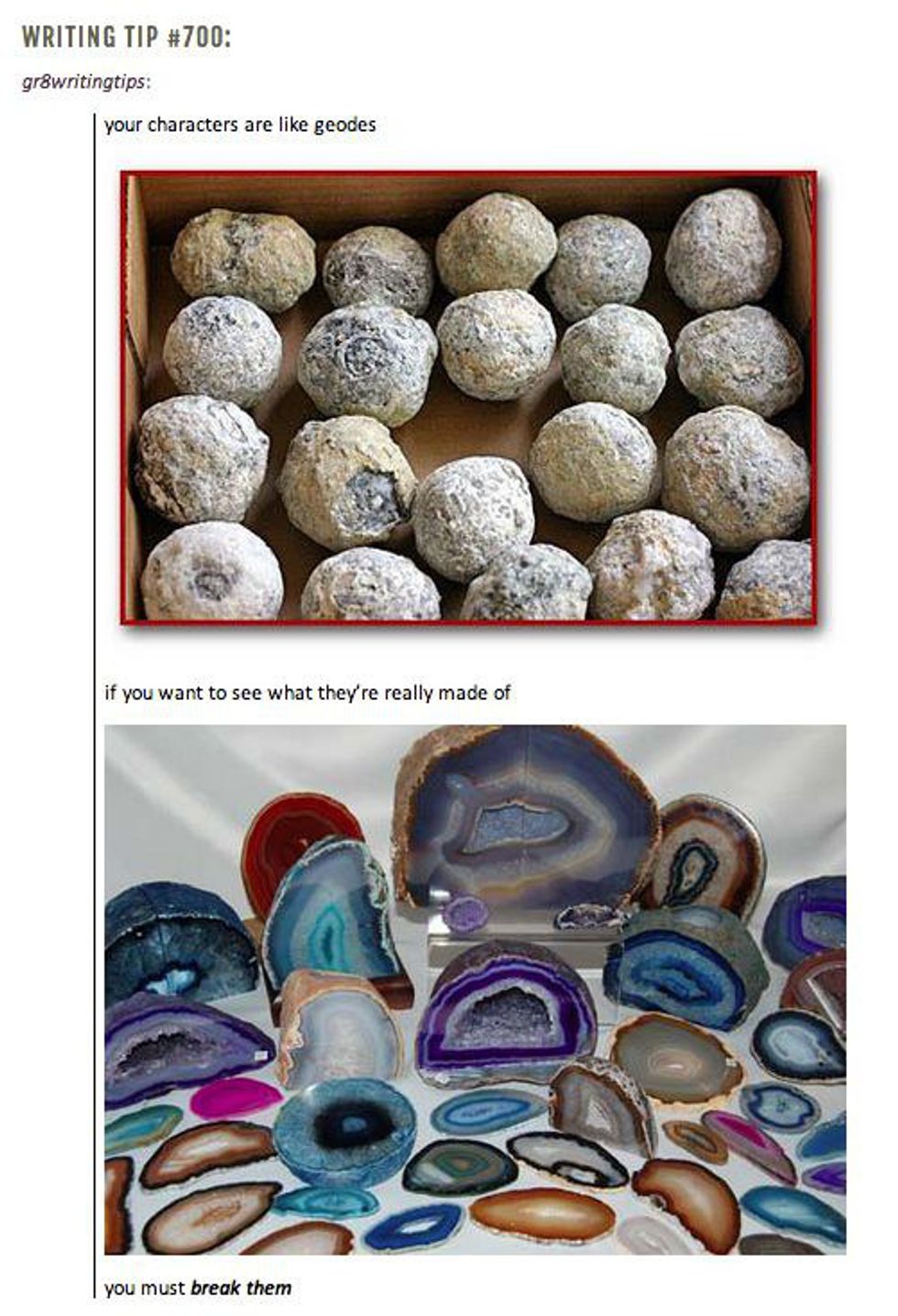 We all hide behind masks. Smiles and laughs that never quite reach our eyes, because inside we're drowning in our problems. And when someone pushes, we crack open. We can no longer withstand the weight of the world, and instead the world sees what we really are. And that terrifies us. But that's what makes us beautiful. What's inside of us. Not the dusty, rough and stained outside which the world has picked and painted to look like everyone else, but the jeweled and unique inside of our souls. That's when we truly show who we are.