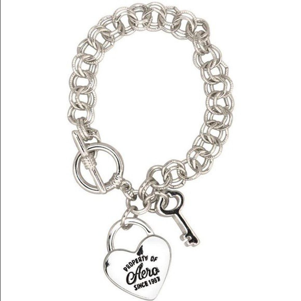 Just when you think that Aéro couldn't fit its brand name anywhere else, they found somewhere to stick in on a piece of jewelry. My personal favorite purchase was a heart and key necklace that broke about two months after I got it. That key is probably still somewhere, and now I'm left with a heart and a keyhole. It probably ended up on the floor of my old science classroom or in my school's cafeteria.