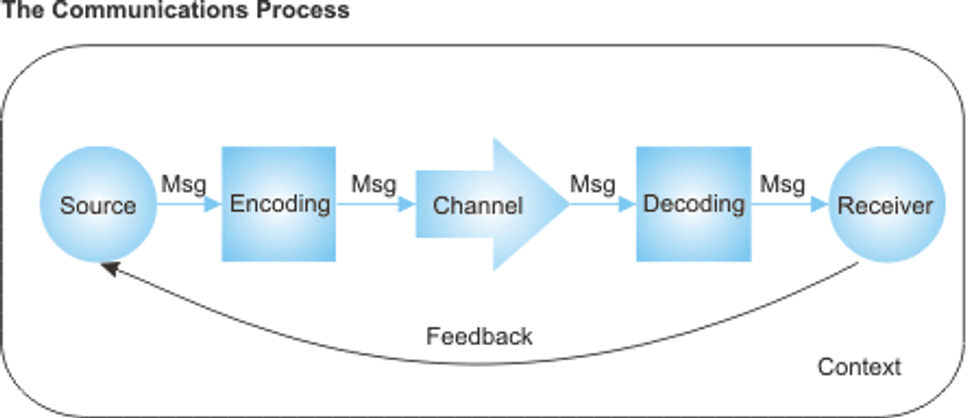 Now, Mr. What’s-His-Face is the sender and Ms. Kind Crafter is the receiver. The message is what he said to her about the gift. The context is the scenario they are in.