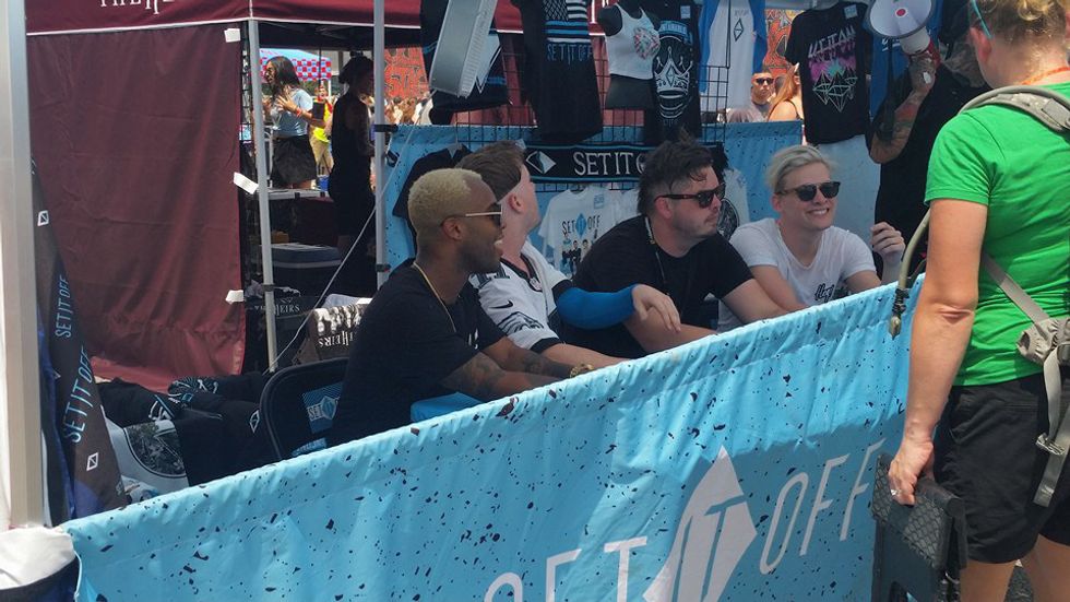 First of all, it was hot! Did anyone care that we were sweating like crazy? No. Were there people walking around with hardly anything on? Yes. But did anyone care? No! It was honestly the most accepting experience I have ever had. Personally, when I stood in line in the morning I thought, "I am going to be so hot!" But within a couple hours and after several runs through the misters, I realized I was comfortable running around in my sports bra because nobody cared. We were all there for one reason and one reason only: the music.