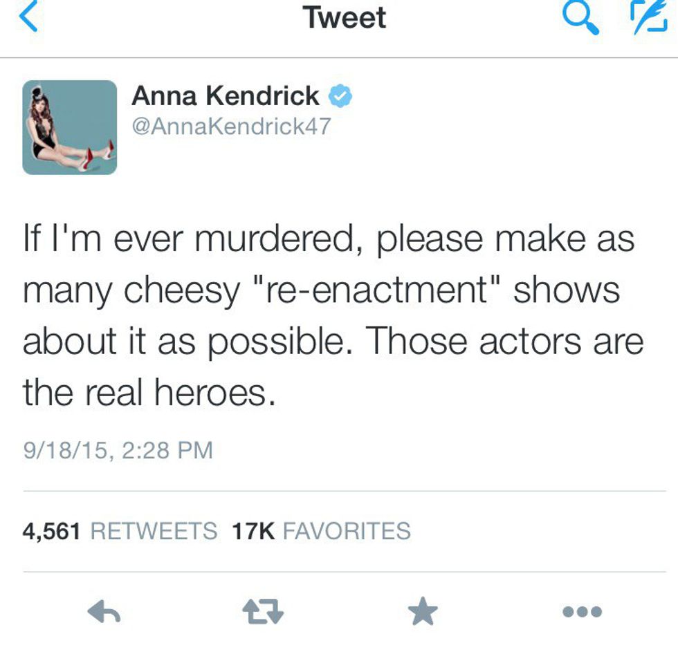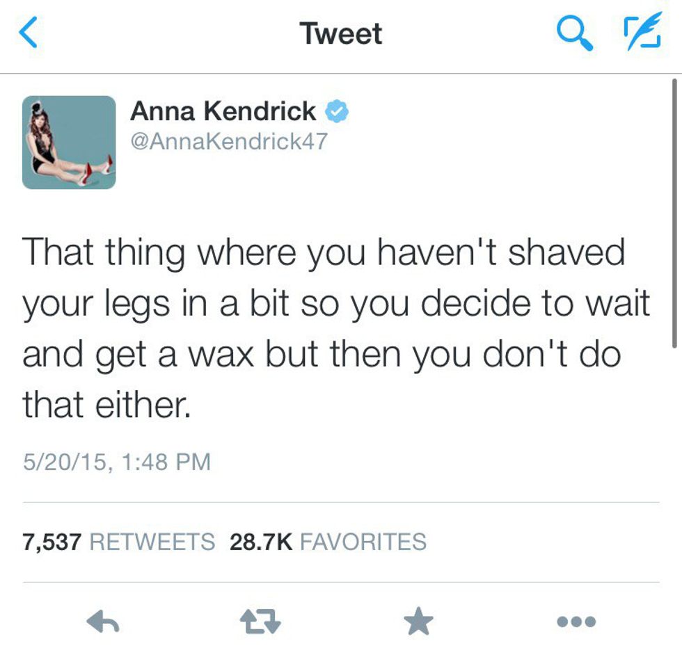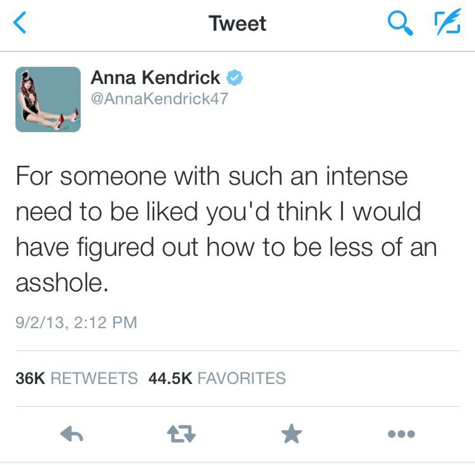 There are many types of Twitter users from those who use it all day, every day, to those who made an account three years ago and never logged in again. Regardless of whether you love Twitter or love to hate it, you should probably follow Anna Kendrick right now. Trust me.