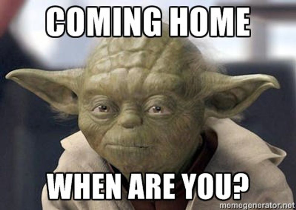 Listen, your parents miss you. If they don't tell you everyday it's because they don't want to annoy you, but they do, a lot. Seeing you for a few days over the small amount of breaks we do get throughout the year just isn't enough time to catch up. So if anything, do it for the ones who gave birth to you.2. You need a break, a real break.