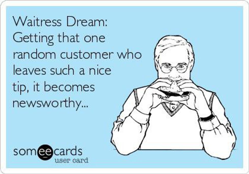 So please keep these things in mind the next time you go to a restaurant. Servers are people just like you who deserve to be treated with the same type of respect that you expect to be treated with. And 20 percent makes everything better.