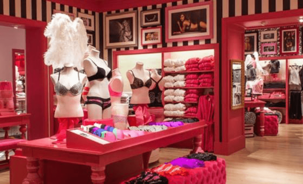 Walking through a Victoria’s Secret Store, you see their sexy Victoria’s Secret Angels on the walls, lots of animal print, and paints of pink and black. The mannequins are all over the store in a soft shade of pink and underwear that may or may not be practical. It kind of makes you feel like you wouldn’t want to walk around in here with your Grandma.