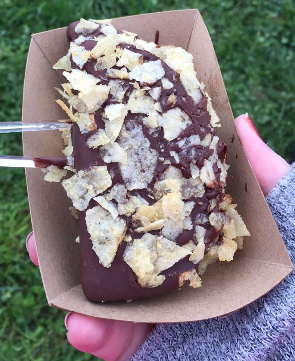 What about a dark chocolate covered pineapple, with crushed up potato chips on top?