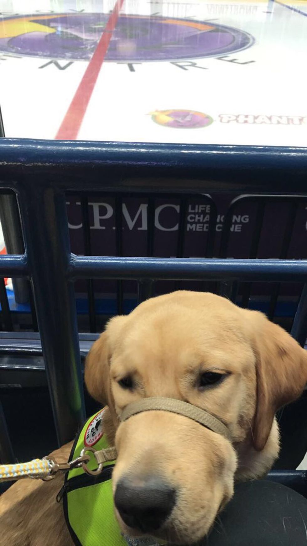 Ok, technically not everyone loves them, but it's close enough. I have yet to take Blitz (the service dog in training that I'm currently helping to socialize) somewhere where people aren't giving him an enormous amount of love and attention. I took him to a number of Youngstown Phantoms hockey games and he didn't disappoint; the kids (and adults) absolutely adored him, and Blitz loved them right back!