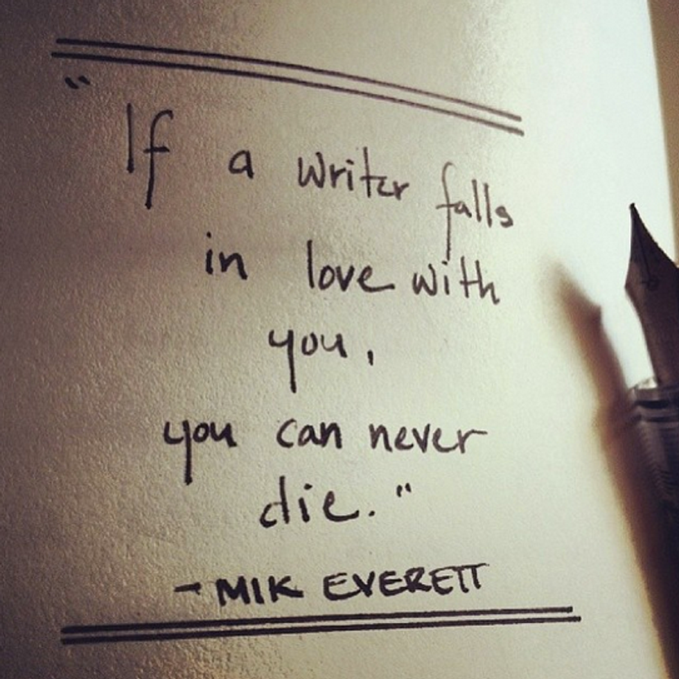On the other hand, writers don't take heartbreak well (I know, who does?). They romanticize everything (their feelings, their love, their depression —everything) and seem to think that because they feel everything so deeply, no one else's woes have ever or will ever match up to theirs. They are egotistical enough to think that their hearts break harder than yours. Their writing for you will continue even after you are long over, and you will probably hate it. They will be dramatic, and the end to your love will most likely be ugly and messy. They don't get over things well. They won't get over you. Because writers have a hard time letting go. And while you might fall out of love with them, part of them will never fall out of love with you.