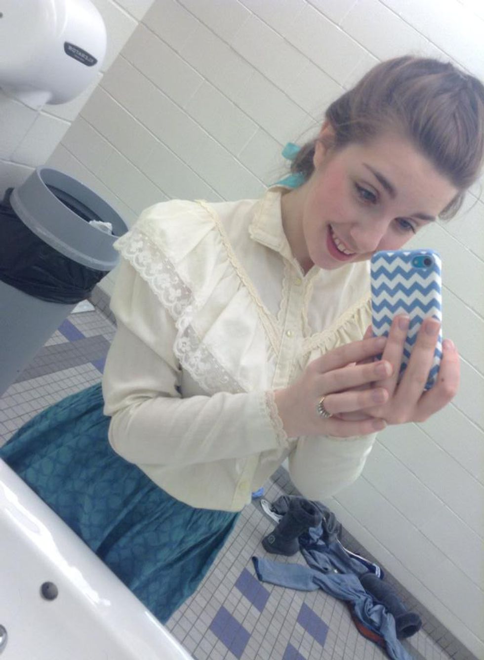 I thought that theatre involved hair and makeup? Guess not. I mean, look at my natural, bright pink cheeks and perfect skin, or the French braid that braided itself! I was looking forward to the glam. *sigh*