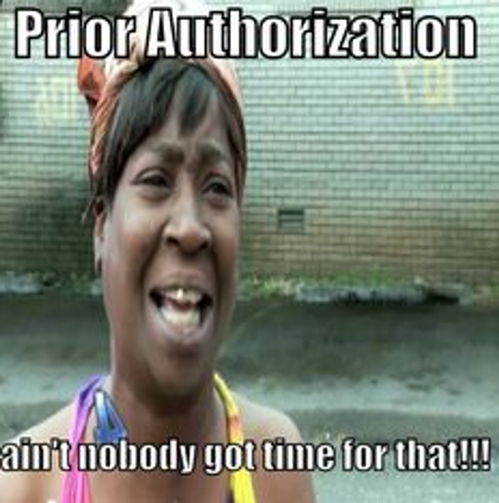 Another issue regarding insurance is prior authorizations. It essentially means that the patient's insurance will not pay for a particular drug for whatever reason. The pharmacy then issues a fax to that doctor's office to either explain to the insurance the necessity of that particular drug or they may simply prescribe something else similar to the initial drug. At best, these can take 48-72 hours to process. Not fun for anybody involved.