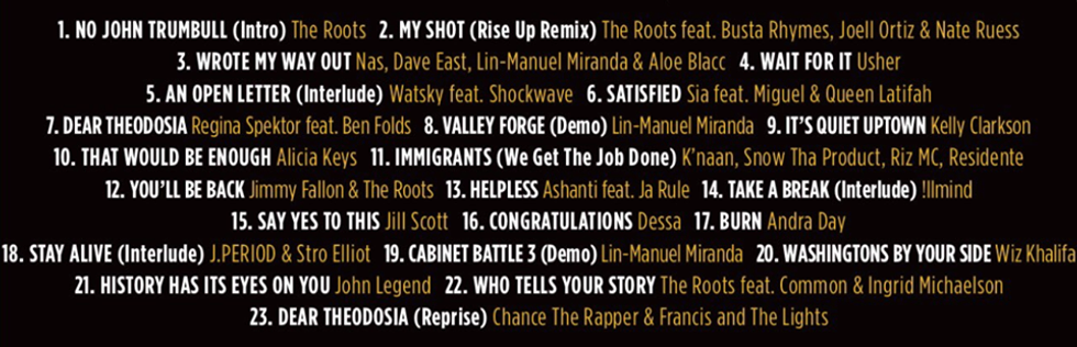 However, we didn't just get a track list when we pre-ordered. Once you pre-order the album, you will get an automatic download of "My Shot (Rise Up Remix)" and Kelly Clarkson's rendition of "It's Quiet Uptown," and, once again, we are not left disappointed.