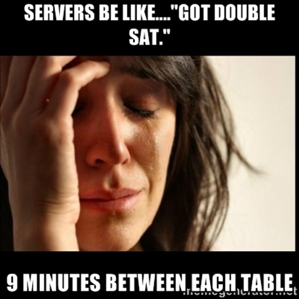 3. They also are not lying to you about the wait even though you see empty tables. Probably the most frequent complaint I get when hostessing is, "How is there a wait when I see plenty of tables right there?" Um, hello! It's called servers! I'd rather you wait for a table than place you at an empty one when a server is currently busy and not going to even offer you drinks until you've been sitting there for 20 minutes waiting. Just because you see an empty table does not mean it's available. There is also a thing called reservations.