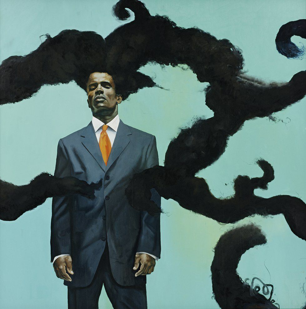 Wiley went on to earn a BFA from San Francisco Art Institute in 1999 and received his MFA from Yale in 2001. It was during his final months at Yale that he began to paint pieces like this, which highlighted a "type of black masculinity that was oftentimes misunderstood or couldn't be processed at Yale" (video).