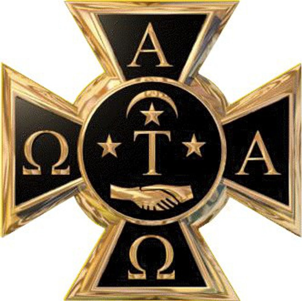 Fraternity: Alpha Tau Omega, more often called ATO. The "Alpha" and "Omega" in the fraternity name references back to the "Christian absolute plentitude or perfection." The "Tau" represents the Tau cross used in the fraternal badge.