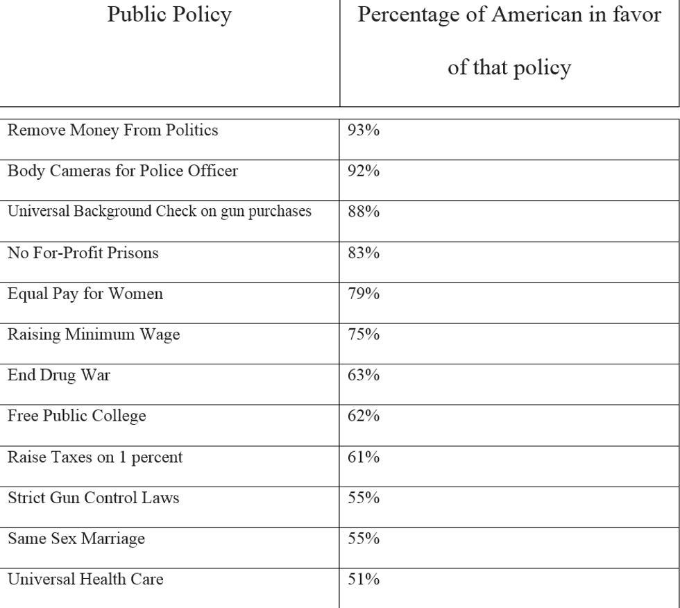 | We need a candidate that will fight for these policies that majority of Americans support. In 2016, neither Hillary or Trump will fight for these progressive policies but one of them will be president, unfortunately. The best we can do is get third party candidate federal funding so they can either force these two parties left and fight for the people or they will die out because they do not serve the American people’s interest. Federal funding will also allow third party candidates to run candidates in local elections. |