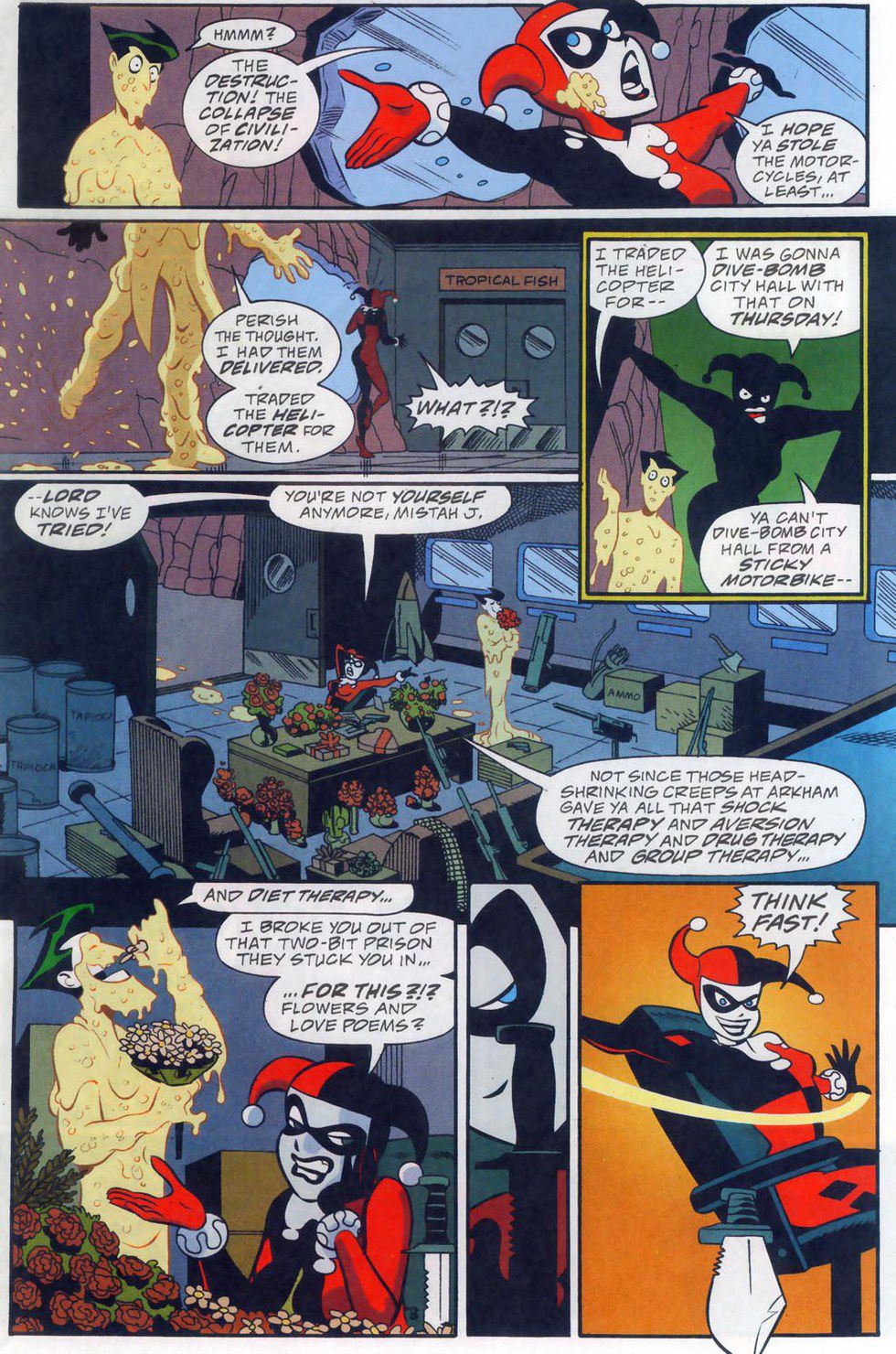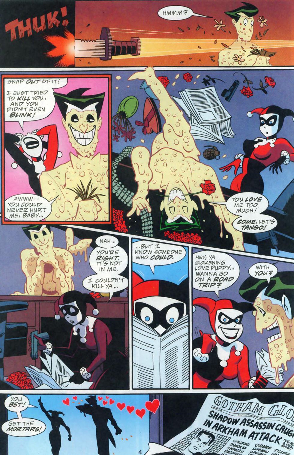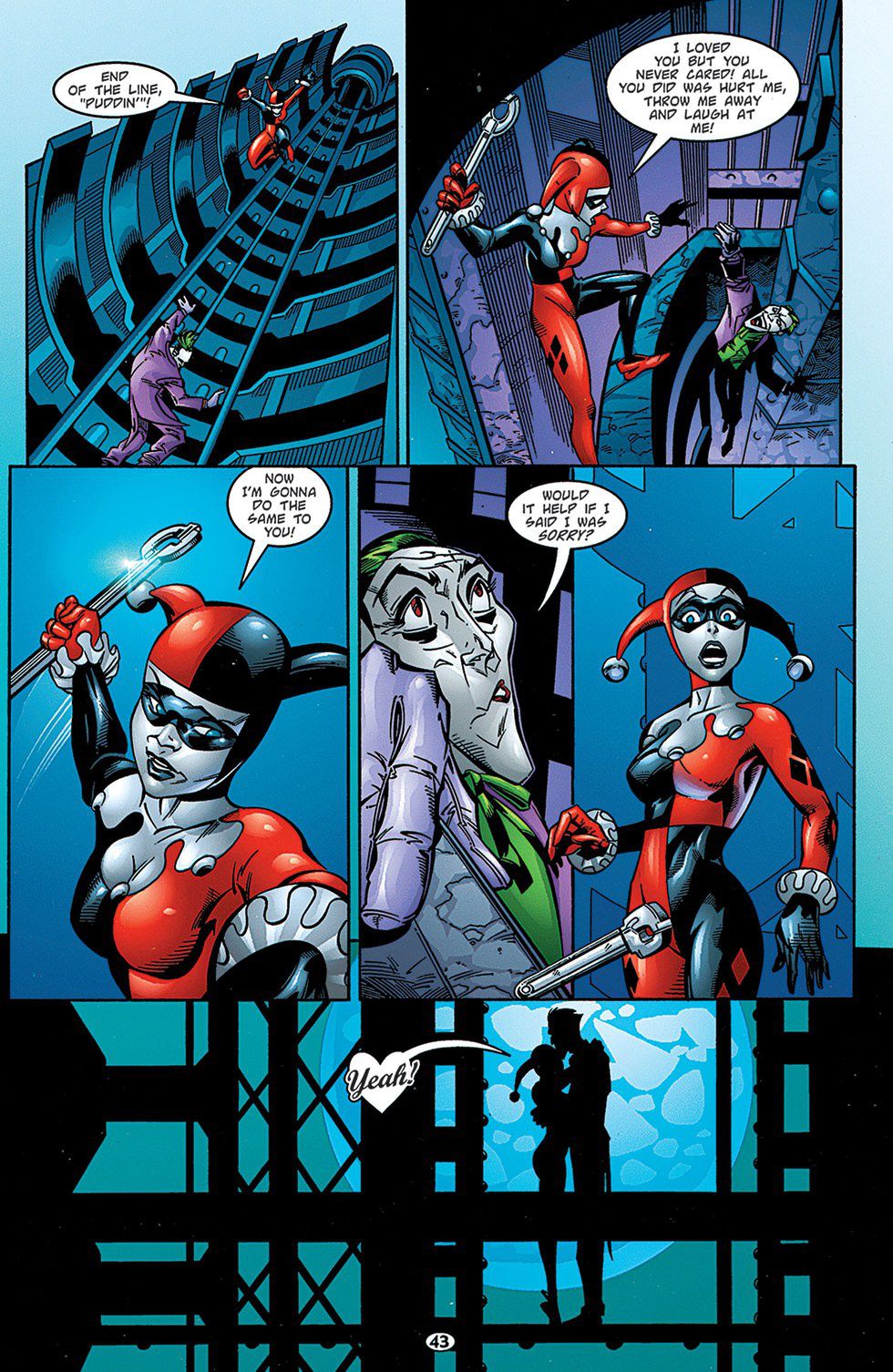 This then calls into question the very idea that Harley is being abused at all because she enjoys it and also gives it. What people make the mistake of is thinking that only The Joker tortures Harley ever, yet in Batman Adventures Volume 2, Issue 3 titled, My Boyfriend's Back, The Joker turns into a lovey dovey mess where all he can do is be kind to Harley. She literally tries to get him killed and harm him just because she hates him that way. Harley doesn't want The Joker to be kind and get her flowers (which he does); maybe that's what you want him to do, but you're not Harley Quinn, are you?