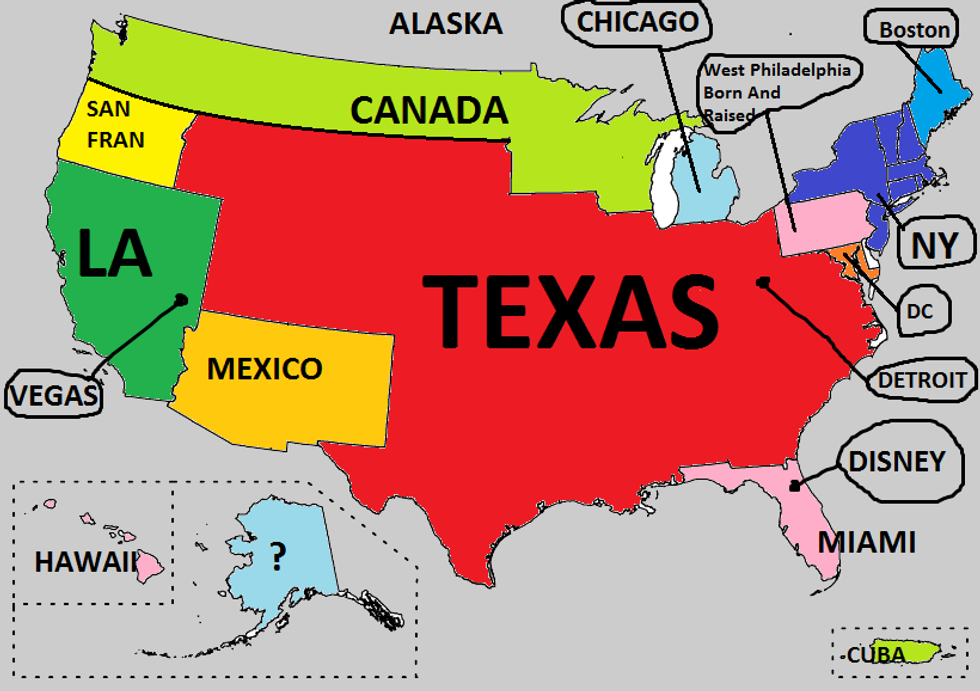 Now initially hearing this, I was bothered for a couple different reasons. The first reason was that the people were not “from Chicago,” they weren’t even close enough, (like Oak Lawn or Lansing Illinois) to make that statement. The second, was because just as easy as they were able to tell people that they’re from Chicago, these people were able to tell them that they clearly were from Massachusetts, but that they weren’t from Boston. Here’s one reason why this bothers me. There are seven continents in the world. One of these continents includes Europe, in Europe, there are around 50 countries, and in each of these countries there are states and cities, why is it that the people from these places will easily tell someone where they’re from, yet people from the United States all just casually associate themselves in the “most common,” location in America? Why is it that when people think of American they automatically think “Chicago?” Here’s why, Chicago is widely talked about on television shows as well as movies. It is also the third largest city in the United States. If a map were drawn of the actual United States how it is really and the perspective of someone from a state other than Illinois, there would be numerous differences based on stereotypes.