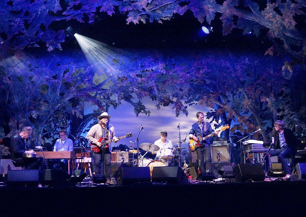 The theater's sound setup is one of the best in the city because of its depth and high ceilings; it must have been easy for Wilco's sound crew to set up with the perfect setting. The stage lighting and stage design also made it easy to create an extravagant show since it was literally made of three layers of paper mache, high school drama club-esque trees surrounding the band. Lighting varied by each song but would completely set the mood for each delicate part of the show.