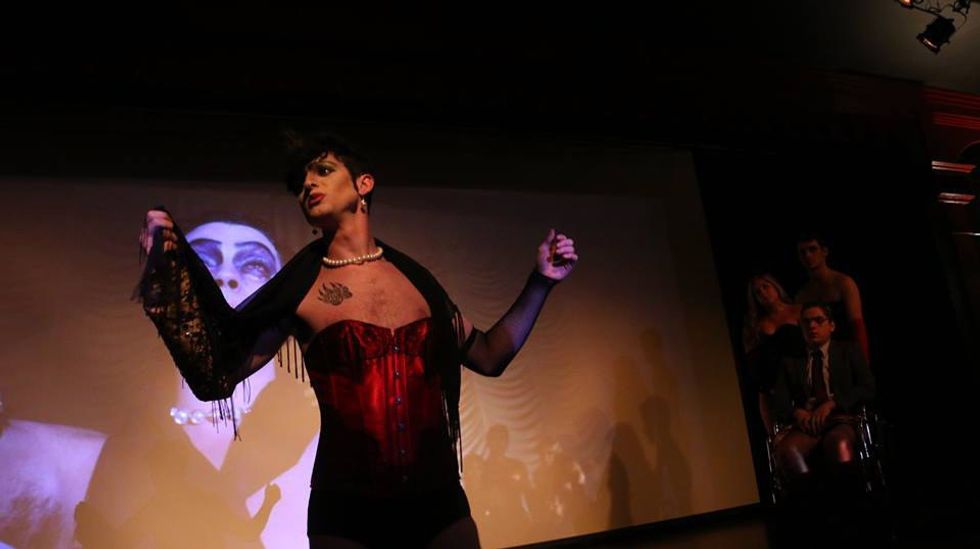 Pretty much everyone but Dr. Scott is half-naked for the majority of the movie, which meant that pretty much all of us are half-naked for the majority of the show. And we made a rule at the very beginning of rehearsals: no jokes about people’s bodies. The logic was that if we felt insecure or judged, we wouldn’t perform well, and so only positive comments were allowed. I’ve had body image issues for years, and let me tell you, there is nothing more healing than strutting[TR3] in front of your friends in a corset and having them yell “YAAAAAAAAAS I LOVE YOUR ASS YOU GO GIRL GIVE ME THAT KICK”, (among other less-publishable things). When our run of the show was over, almost every person in the cast admitted that being in it made them feel more confident about their bodies and their self-image, and that getting naked and dancing for their friends helped them to finally feel beautiful.