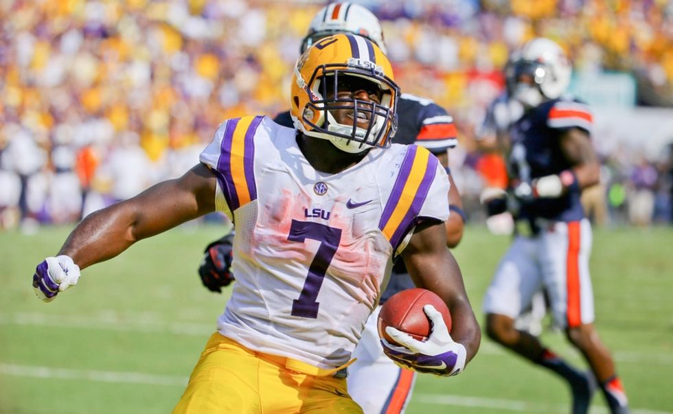 Running back Leonard Fournette put on a spectacular performance in front of the home crowd, rushing for a career-high 228 yards on 19 carries and three touchdowns. Despite being 22 yards shy of breaking the school record of most rushing yards in a game (Alley Broussard set the record against Ole Miss in 2004), Fournette gave lots of credit to the offensive line, posting a picture of them on Twitter and thanking them.