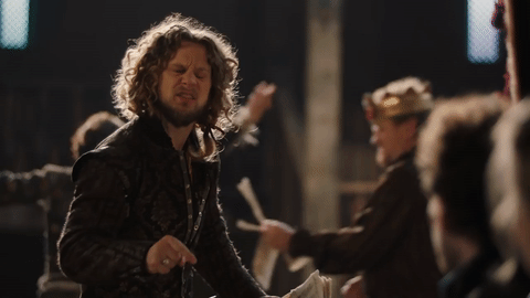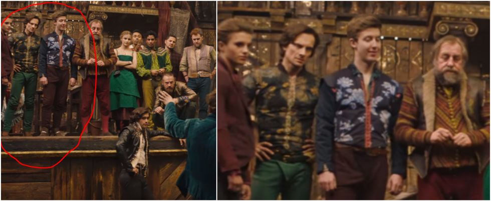 Shakes then declares that their only weapons are words, which seems ridiculous considering he was just holding a sword a few seconds ago, and stood next to a dude with a gun. Also, pretty sure that Elizabethan writers DID pack heat. The dagger that killed Marlowe was his own, and Ben Jonson regularly fought, killed, and beat people up. But sure, words, whatever, whatever. Shakespeare and the actors proceed to Fight the Man. I'm starting to think that this drama will be pushing the "Elizabethan London's literary scene was full of queer people, people of color, and rebel misfits fighting for justice and rocking that glitter" aesthetic while simultaneously straightwashing Shakespeare and whitewashing the Dark Lady and featuring extras who play fictional genderbending strippers (as opposed to, I dunno, actual historical Earls) for edgy kool points.* When I imagined this film as being a Panic at the Disco! influenced fanfic of Roland Emmerich, I had in mind the movie "Anonymous," but it's looking more like "Stonewall" now, tbh.