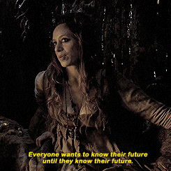 Remember way back in yesterseason when we were treated to the first (of many) flashbacks featuring this woman above? I do and what I remember is that the woman warned Cersei that she would not like what Maggy had to share. That does not stop Cersei, and of course Maggy shares the tale of how Cersei will not marry the prince (Rhaegar), but the king (Robert). She will have three kids (all Jaime's) while her husband will have 16 (his bastards). They will all wear crowns of gold (they were given the surname Baratheon after all), and shrouds of gold (Joffrey's death in season three, Myrcella in the season five finale and Tommen in the seaosn six finale) and outliving all of her children. Now we have yet to see who will be the younger more beautiful queen that casts her dwon (Dany is on her way and Sansa is up in the North with Jon ready to do battle), and who will be the younger brother that chokes the life out of her. At this point, this scene can very much go one of two ways: it's either Tyrion as he storms Westeros alongside Dany or Jaime who as we their gaze during her coronation has no love left for her. However after watching this said gaze twice now, I highly doubt Tyrion will be Cersei's undoing the way she had always thought he would.
