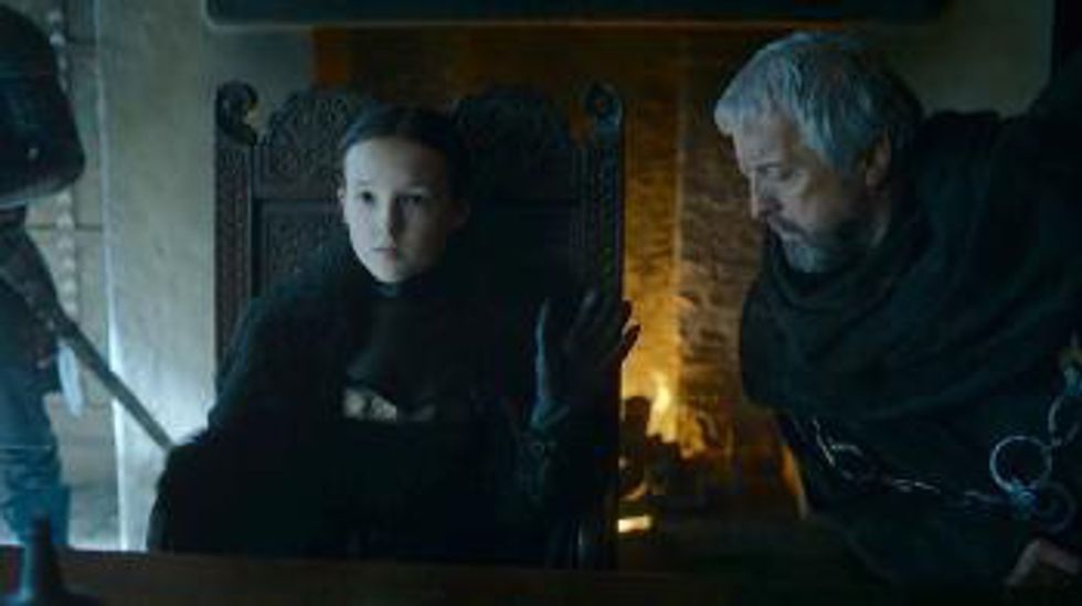 The Red Wedding has finally been avenged, and the Stark banner finally hangs over the wall of Winterfell for the first time since anyone can remember. The 'King of the North' scene was a little too reminiscent of Robb for our liking, but we're just happy that the family is starting to reunite and slay their enemies.