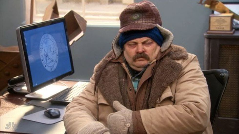 If you’re anything like me, you refuse to wear anything that might possibly impede on your aesthetic, despite the respite from cold it might provide. We all know how good those North Face/Patagonia/Vineyard Vines/Target-brand vests are at keeping people warm. I mean, who would have thought that cutting the sleeves off of a coat would prove to be so superior at keeping people toasty on brisk days. It’s genius, we all know that arms don’t get cold. However, the time for fashion has passed, people, and we’re facing a life-or-death situation where only the strong survive. The boys who pile on a couple sweatshirts and call it a day make every maternal instinct in me become alert and frankly, it’s inexcusable. I recommend buying a coat from the same place where penguin researchers spending a year in Antarctica purchase theirs. A full body parka/onesie is preferable, but if you can’t find one, try digging some snow pants or taping together some children’s jackets you find at Goodwill. Honestly, any supplies that you can find that will conserve body heat. The less skin exposed to the enemy (the air), the better.