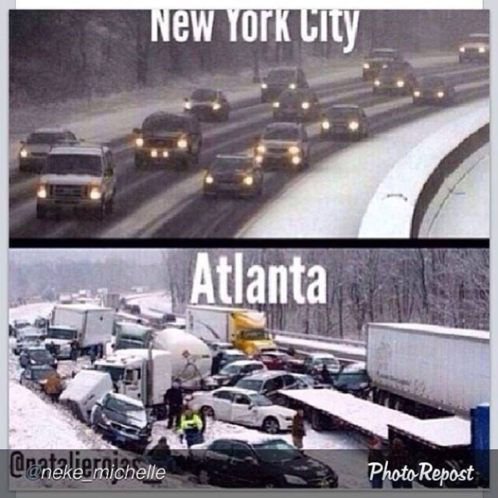 There are memes plastering the internet of southern driving in the snow, with the most common being the one comparing southern driving versus northern driving. Like that one up there. Our main problem is we freak out and forget how to drive with common sense.