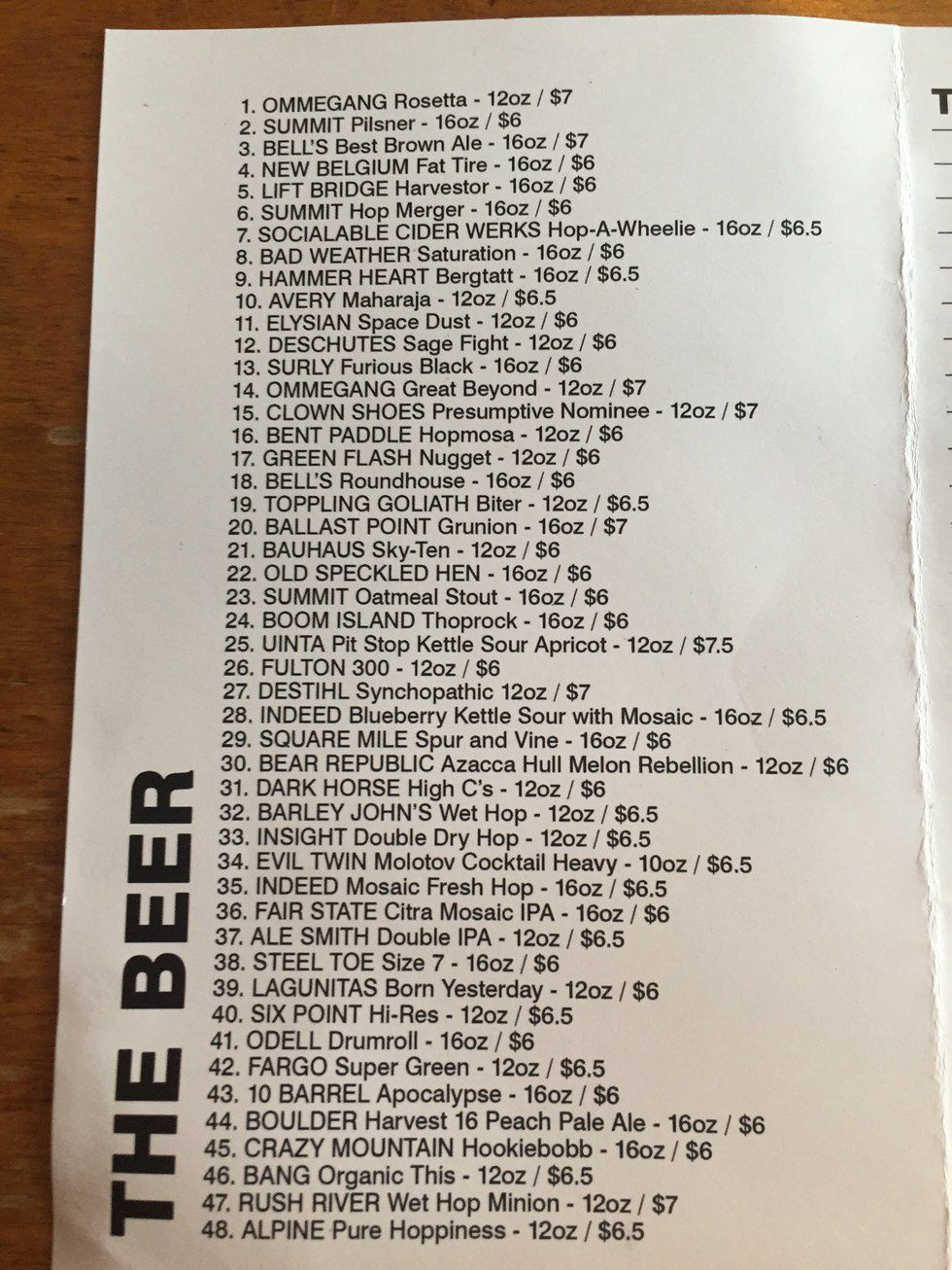 A three-sided island style bar gets you a quick greeting and an excess of craft beer options. Their taps include local and nationally selected brews well priced alongside each other. The bartenders are knowledgeable and don't hesitate to get you a sampling of the beer you wanted the first time. This place is authentic. Classically upholstered leather booths or an outdoor patio, the large street faced windows keep a warm and bright environment. The wooden bar features character 13 years deep, there's no need to hide here. It's currently Hop Fest and their selection curates near 50 taps and bottles. Food options range from burgers and sandwiches to salads, soups and Mexican. Entrees feature seafood, pizza, salmon, spaghetti and jambalaya. The food looks tasty, but I just came for the beer.