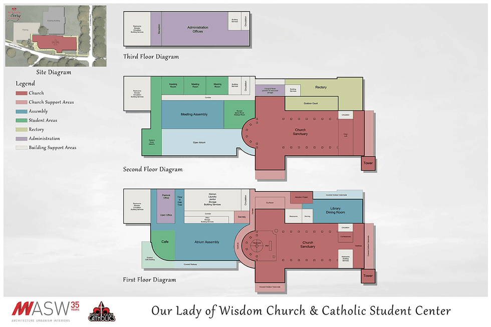 Our Lady of Wisdom Catholic Church and Student Center resides on the ULL campus. Having been on the campus since 1923, it has become home to the many students and families that it serves. The church and student center have both been renovated to fit the needs of the ministry. In its 90 years of service, though, the church and student center has experienced a few issues. Two major issues include the disintegrating condition and the lack of space. The student center has been experiencing many break downs: some toilets are not functioning, the cafe has a leak for every student, and the pipes are practically made out of clay, etc. Another problem that the student center encounters is its cramped space. The room is becoming less spacious as the number of students increases. This is a good problem, but it is still a problem as it begins to limit the ministry. With these issues, new plans have been proposed to build a new church and student center and funding has recently begun.