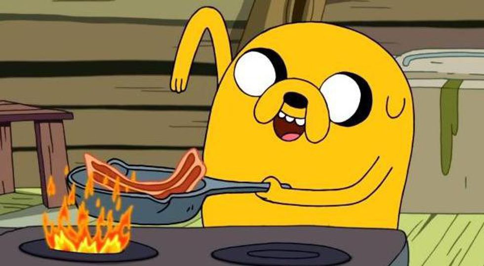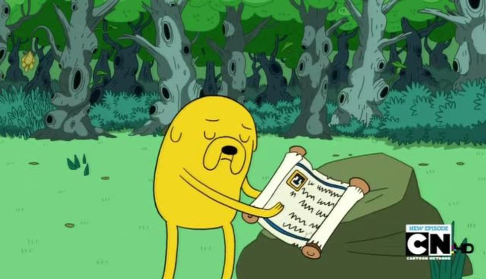 Adventure Time airs on Cartoon Network and is currently awaiting its eighth and recently announced final season. The show follows a boy named Finn and his magical dog Jake on their many adventures. The characters explore topics like life, love, friendship, jealousy, pain and loss, just to name a few. Jake The Dog, the assumed deuteragonist, is a major contributing source of knowledge and advice, whether he is aiding in Finn's search for the Enchiridion, an epic hero guidebook, or teaching people to make bacon pancakes.