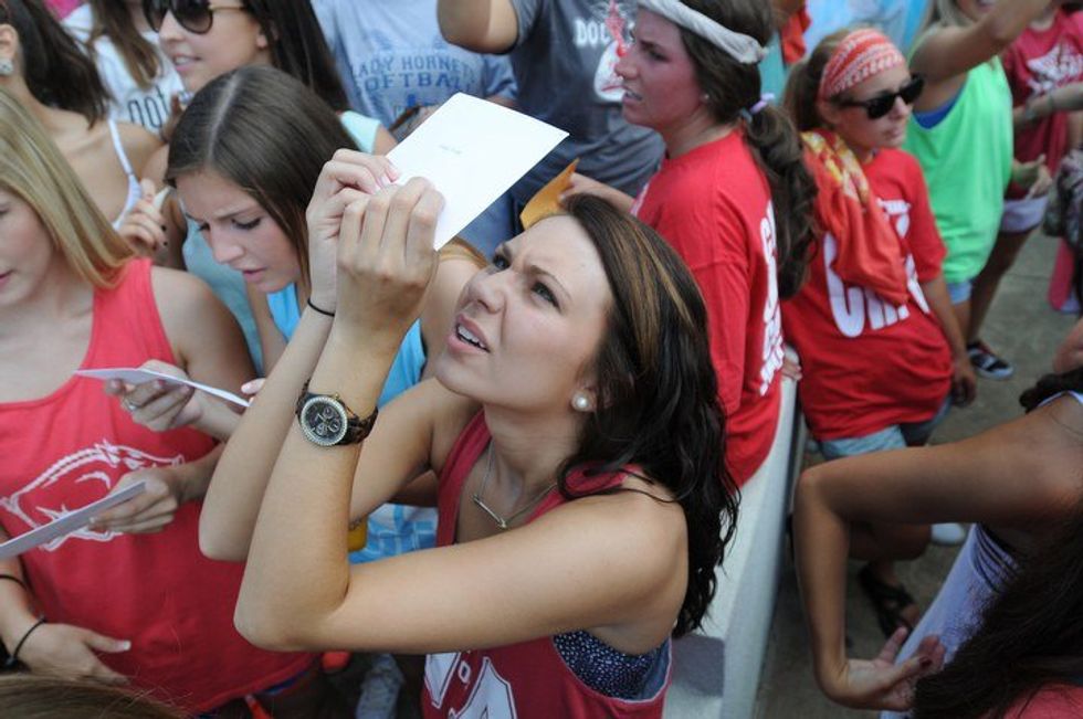 I am ashamed to say that one year ago, I was that girl. I was the girl who opened her Bid Day card and started crying tears of sadness instead of joy. I slumped my way down the hill in disappointment, and I sulked in my Bid Day jersey instead of taking pictures with the giant letters in front of my new house.