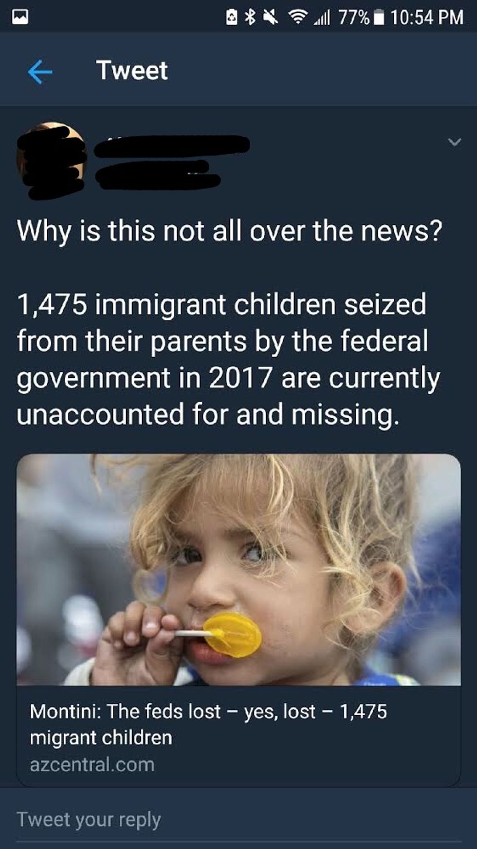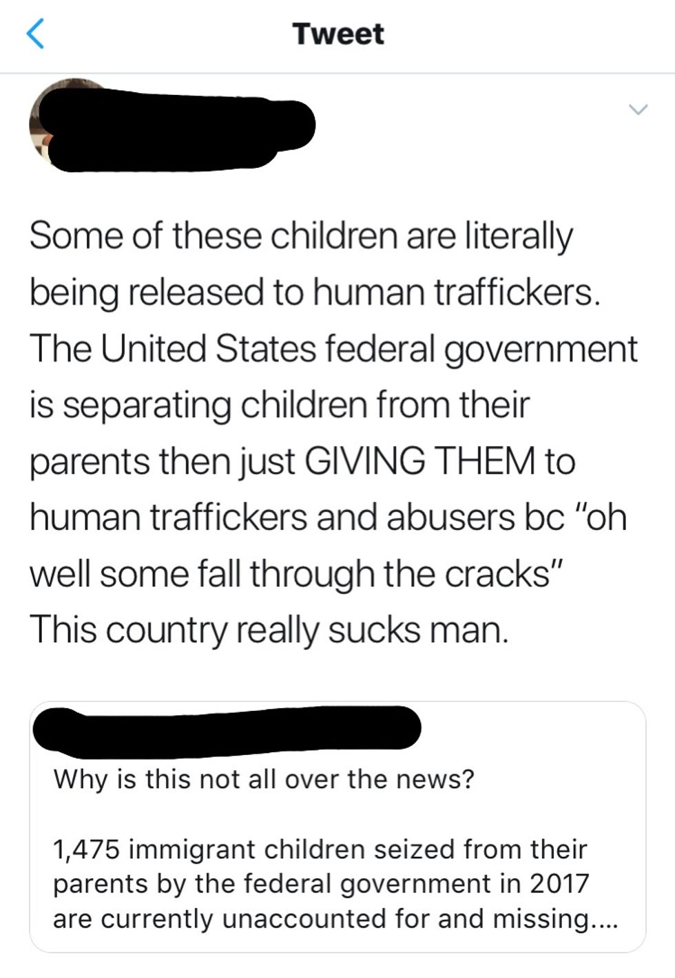 First of all, the article that inspired the Twitter thread reads that “the federal government has lost — yes, lost — 1,475 migrant children in its custody.” However, these children weren’t in the custody of Health and Human Services (HHS) at the time of the story's publication; they were actually placed with sponsors.
