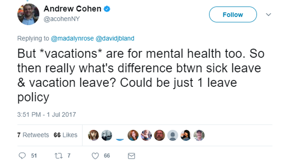 Responses to Madalyn did not go unheard--she made a point to reach out to others either questioning the validity of a mental health sick day, or otherwise asking for advice.
