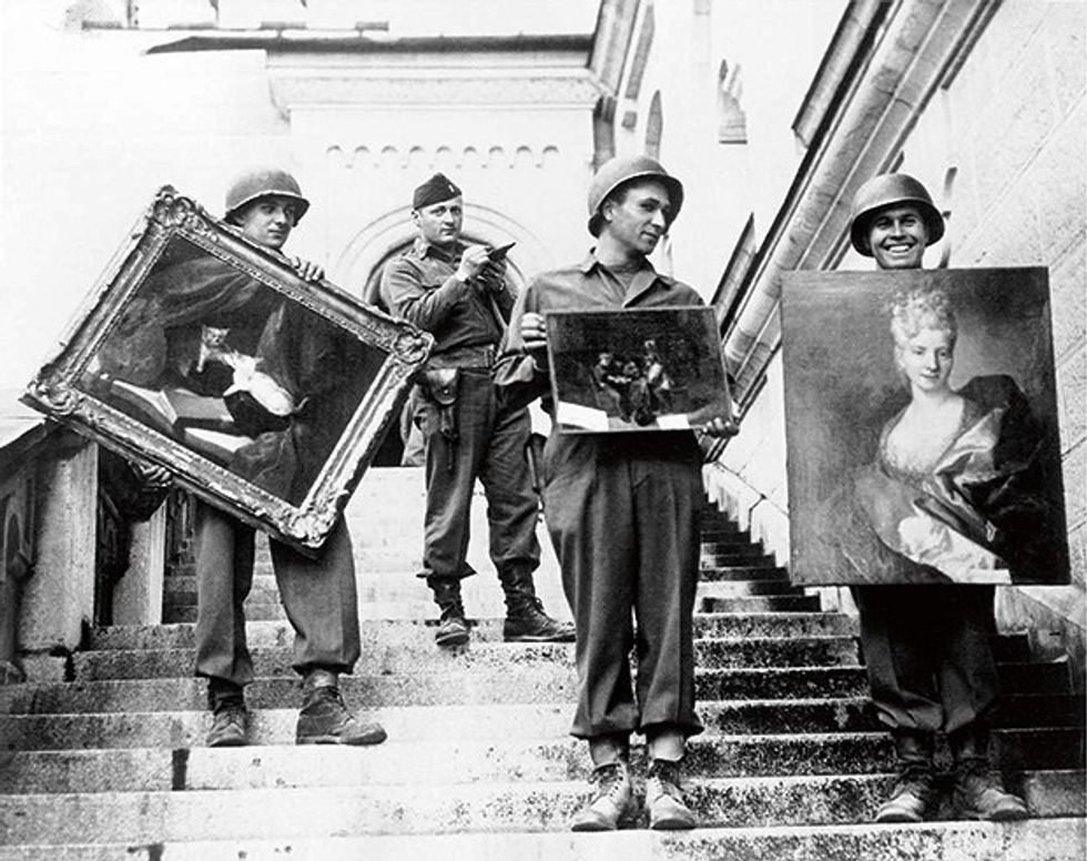 Nazi soldiers carrying stolen artwork.
