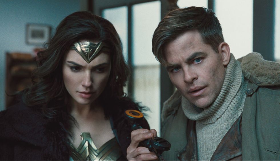 Long story short, there are two types of virgins in this film. Maru’s effectively a weak, hysterical (in every Galenic sense), old maid who doesn't fit in to the sexual economy: she'd be right at home growling out the sexually-frustrated opening monologue to "Richard III" to justify her gas experiments. In contrast we behold the supple, skin-baring Diana, who rejects Steve's sexual companionship but warms to it eventually. It's Diana who's the it-girl in this movie: she has mastered the art of being the modern woman, tough and beautiful, independent but still sexually available, achieving complete and utter #Flawless. In the scene where Pine tries to seduce Maru, his plan fails when he gets distracted by Diana, entering the ballroom in a seductive blue gown. Maru, hurt, realizes that “your attentions are really elsewhere.” We are, of course, meant to sympathize with Pine, because, really, who would ever want a woman like Maru? This moment is triumphal and primal; it is also a perfume advertisement.