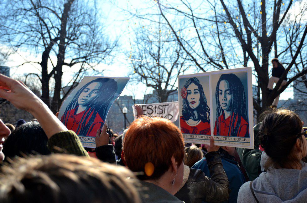 My best friend’s close friend from college couldn’t be there. We took her photo from her first anti-Trump rally and captured pictures of it at the Boston Women's March, so she was there in spirit! She ended up all over Boston afterward.