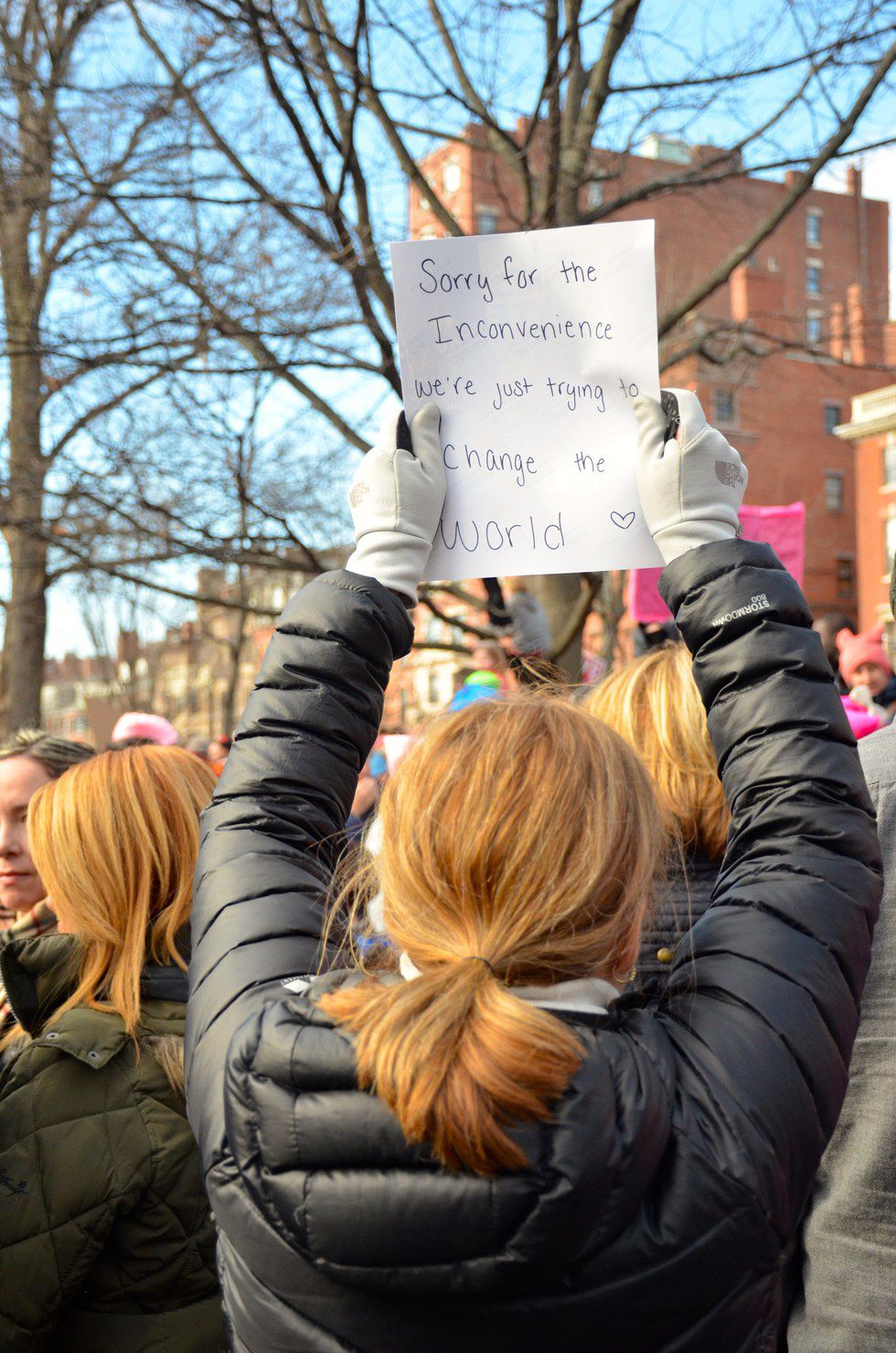 I am not the type of person to be vocal in the instances of anything political, and keep my opinions on most topics to myself. Most know my view on sports, but like I said most topics. Originally, I had no desire to attend the Women’s March in Boston. I didn’t even know what it was truly for, except that it was what I was assuming a bunch of angry feminists. It was indeed, but it wasn’t just feminists who turned out.