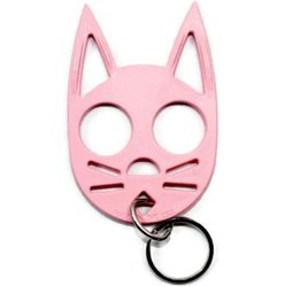 This clever keychain is an absolutely “puuuuuurrrrfect” way to discreetly arm yourself if you come across some bad luck. Just like a real cat, you can bust out the claws if someone tries to mess with you, making them wish they had nine lives. Simply place your fingers into the eye holes of the cat, grip the bottom of the cat's head with the bottom of your palm, and thrust the item forward to puncture your attacker. Try your best to aim for something that will leave them immobile afterwards (such as his eyes) in order to keep your assailant from bouncing back and attacking you. Afterwards....